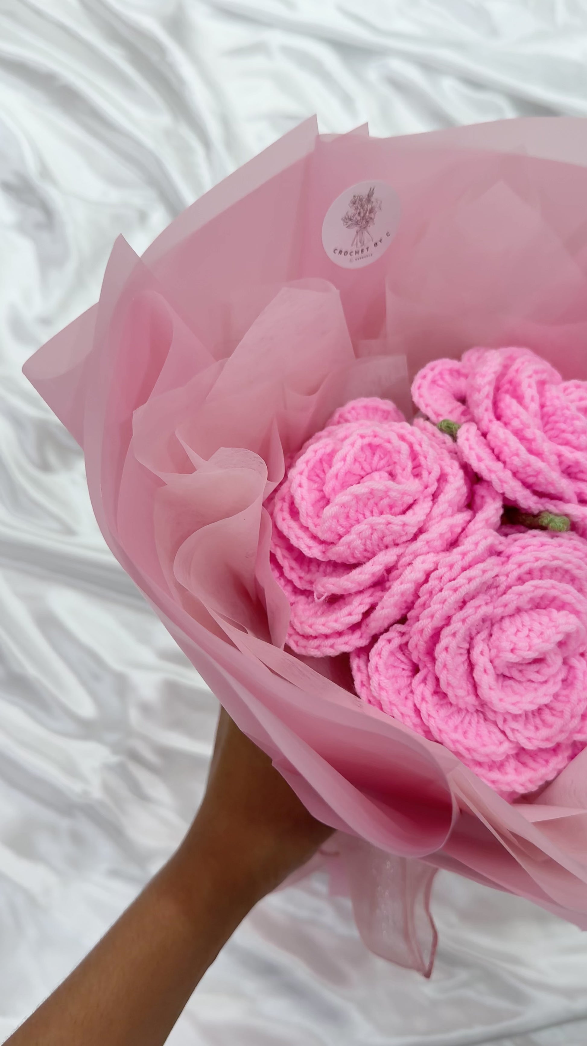 Sweet, delicate, and full of grace — this bouquet of three hand-crocheted pink roses is the perfect way to express love, appreciation, or gentle affection. Whether it’s for a birthday, thank you gift, or just because, these soft pink blooms bring a touch of charm that never fades. Everlasting and low-maintenance, each rose is lovingly crafted to brighten someone’s day for years to come.