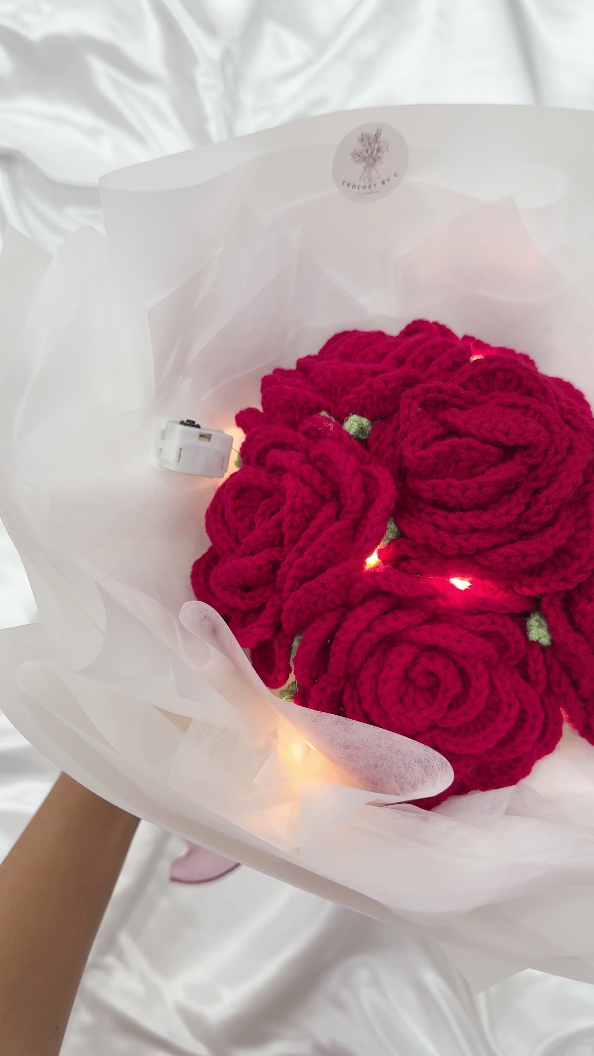 A bold and romantic statement, this bouquet features six hand-crocheted red roses — each one carefully crafted to last forever. Symbolizing deep love and passion, it’s the perfect gift for anniversaries, proposals, or any heartfelt occasion. Beautifully arranged and maintenance-free, this timeless bouquet is sure to leave a lasting impression.